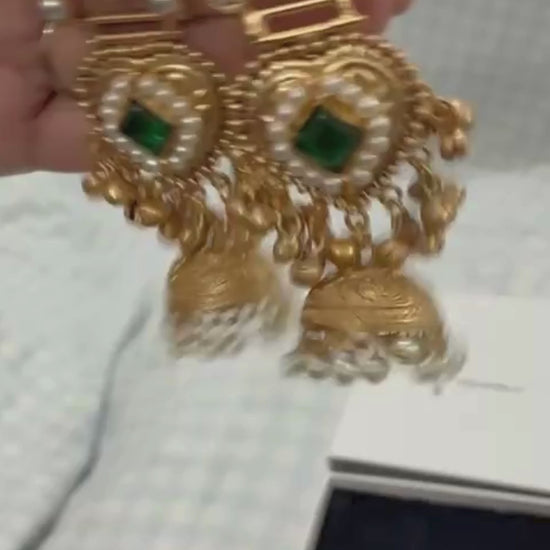 ChicShukra Emerald Pearl Gold Jhumka Earrings