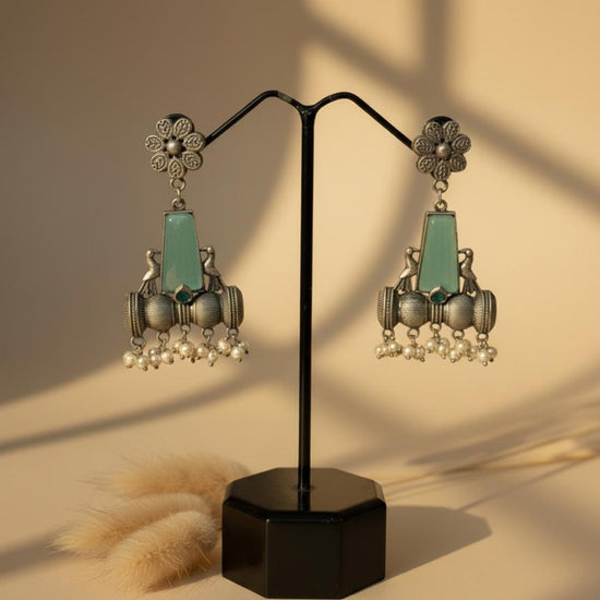 ChicShukra Mint Green Oxidised Silver toned Earrings
